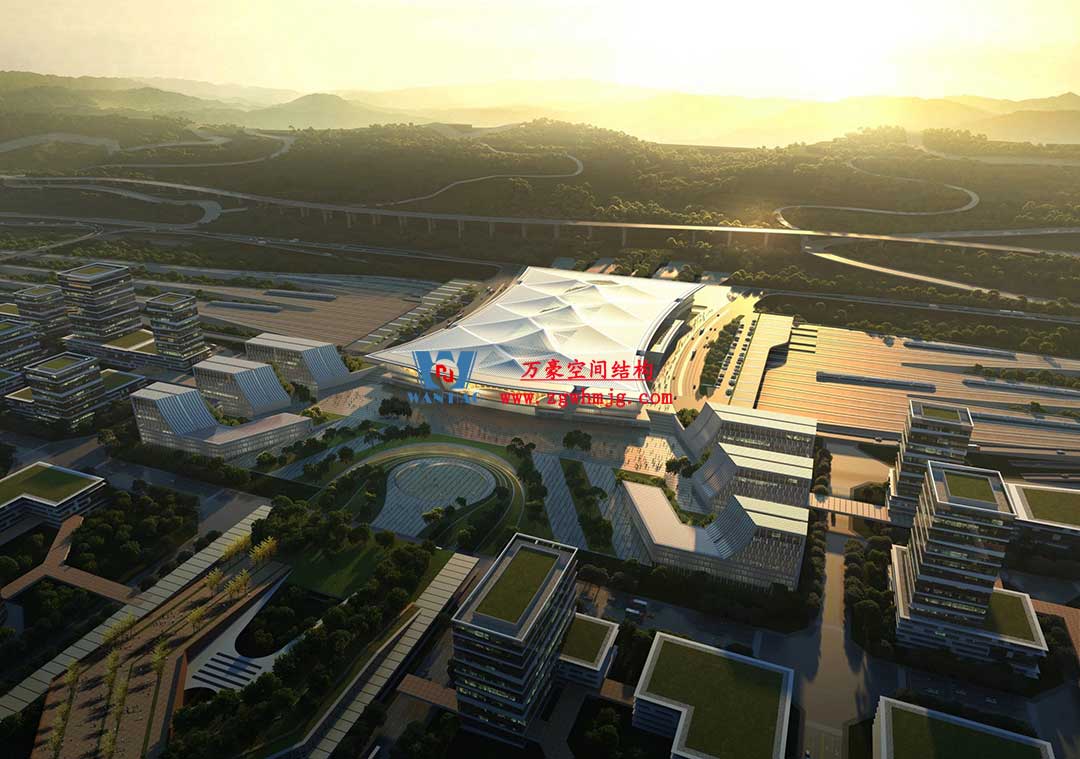 西安東站ETFE氣枕膜結構項目位于中國陜西省西安市灞橋區繞城高速公路外側,膜展開面積1200平方米。是中國鐵路西安局集團有限公司管轄的特等站,是集高鐵、普鐵、地鐵、公交于一體的特大型綜合交通樞紐 。整體建筑寓意“秦山渭水、絲路長安”,屋面采用高低起伏、錯落有致的菱形形態,立面運用靈動弧線造型。